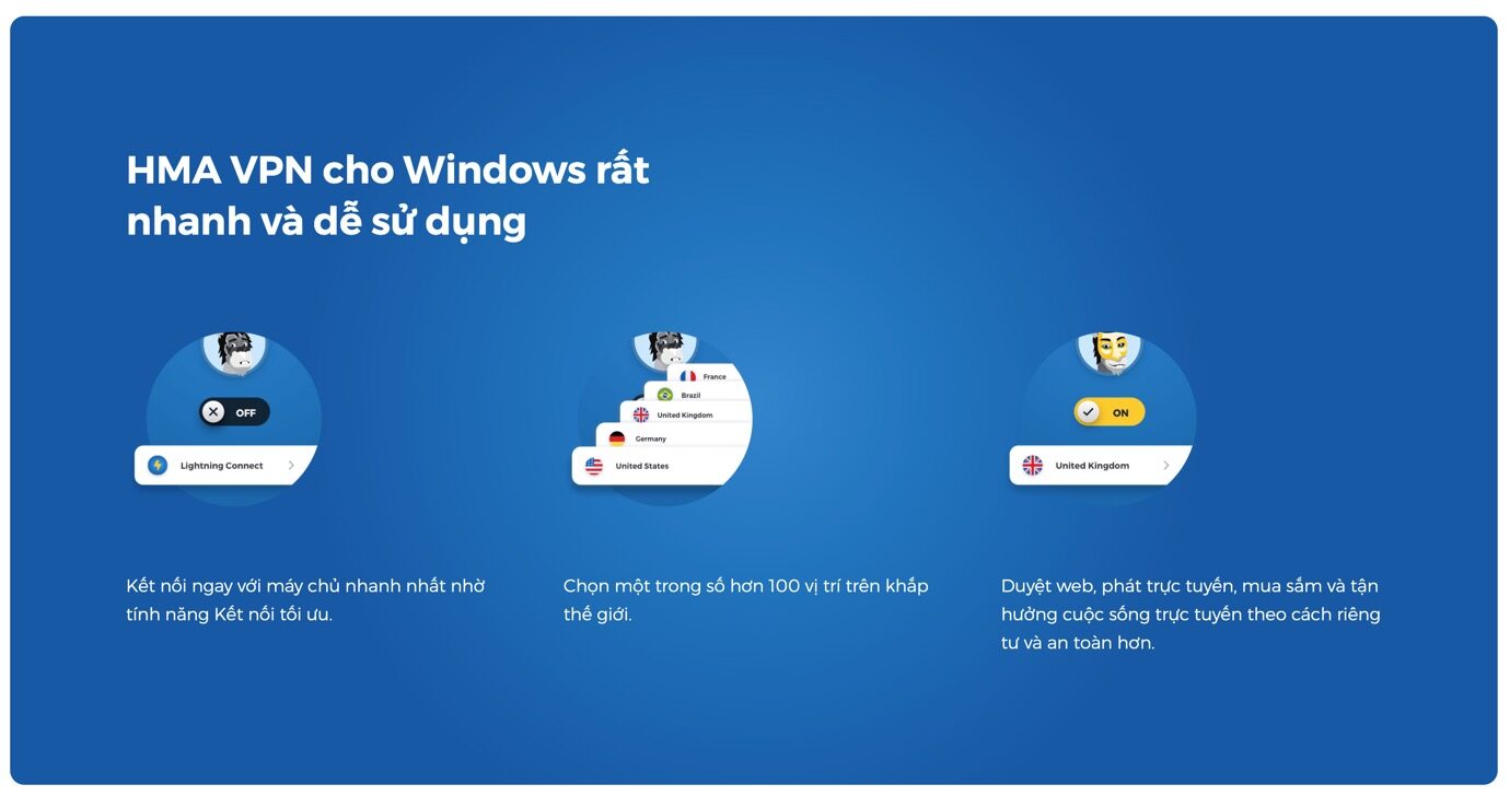 Với giao diện đơn giản, tốc độ ổn định và bảo mật mạnh mẽ, VPN HMA phù hợp cho cả người mới và người dùng nâng cao.