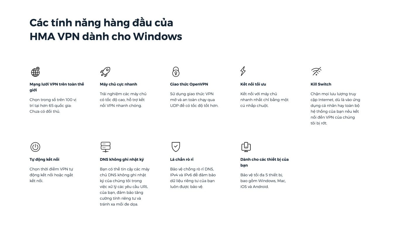 Tính năng & Lợi ích nổi bật của Tài khoản HMA VPN
