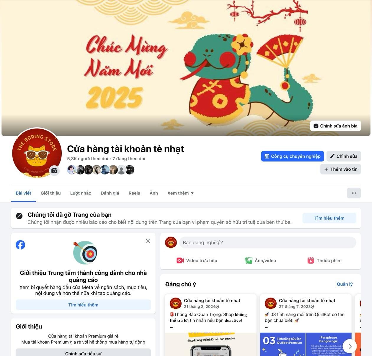 Cửa hàng tài khoản tẻ nhạt xin thông báo: Fanpage chính thức hiện đang tạm thời không thể nhận và trả lời tin nhắn của khách hàng do bị hạn chế từ hệ thống Facebook.